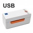 The desktop label printer with one button is easy for on/off, just one minuture to do the job, comes with a USB cable, and a small "starter" packet of 4" x 6" self adhesive labels, Notice: In the MAC system, manually save the previously set size, the selected size is not saved automatically every time you print, you need to save it manually